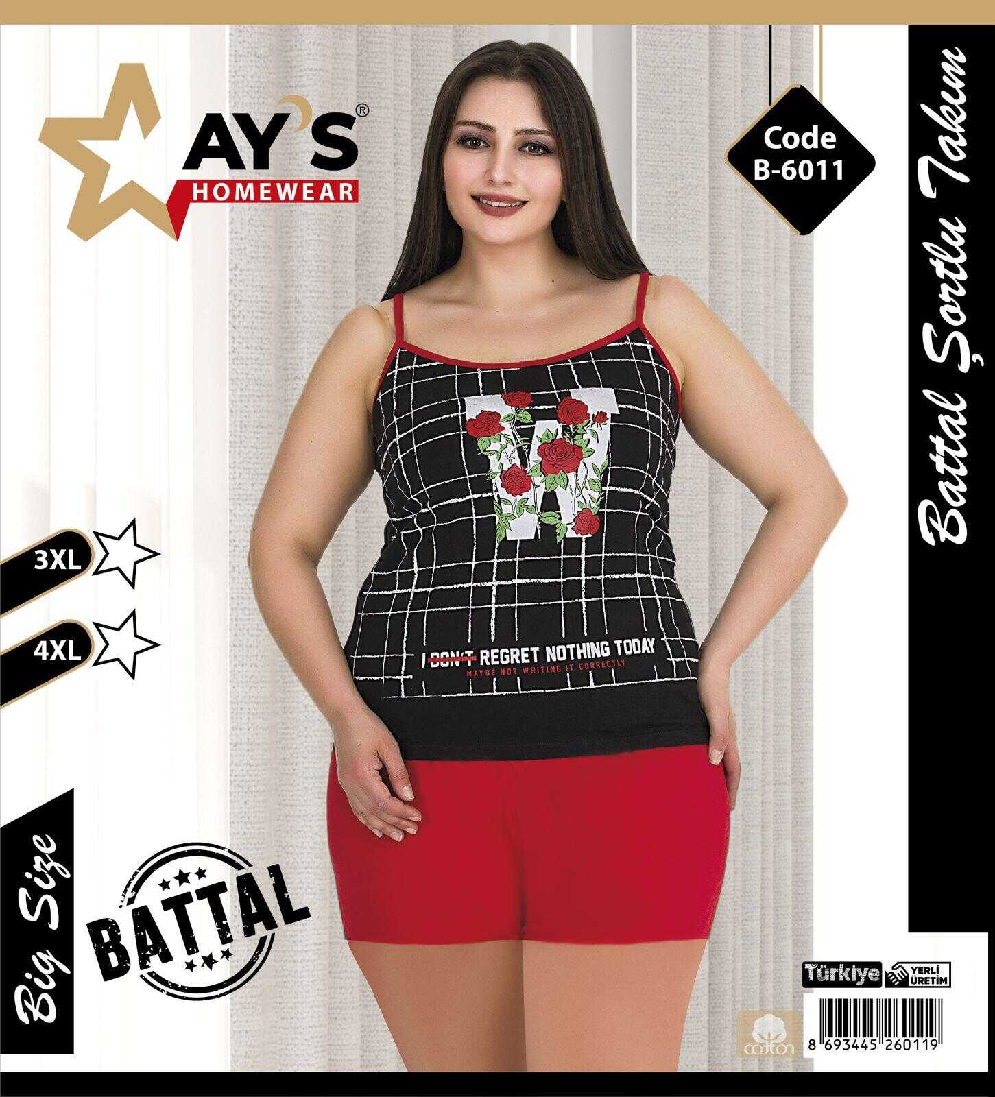 Büyük Beden Şortlu Pijama Takımı- KARIŞIK RENK/DESEN - 1 Adet Ürün Fiyatıdır